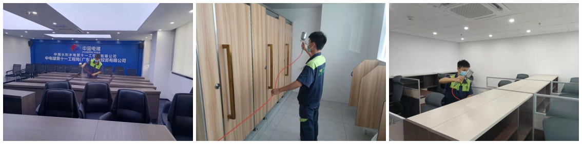 中電建第十一工程局(廣東)建設投資有限公司新辦公室裝修完成,辦公室文件柜等大多以人造板為主,如刨花板、三合板等,這些材料中都含有一定的甲醛、甲苯、二甲苯等毒害性物質,長期下來會對辦公室的空氣質量造成污染。為了員工的身體健康選擇了行業資深的室內空氣治理公司 奧因環保進行治理!